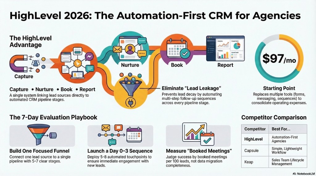 Choose HighLevel if you need marketing automation and CRM workflow to run together (capture → nurture → book → report). It’s especially strong for agencies managing repeatable funnels across multiple pipelines.